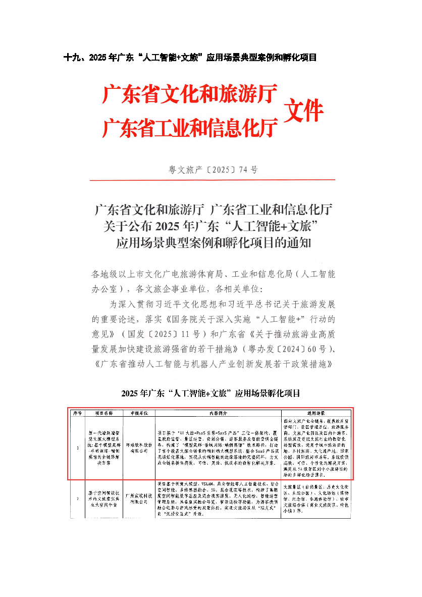 一、2025年广东“人工智能+文旅”应用场景孵化项目